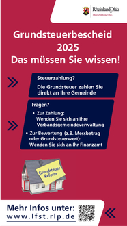 Weitere allgemeine Informationen zur Grundsteuerreform finden Sie auf der Webseite des Landesamtes für Steuern Rheinland-Pfalz unter www.lfst.rlp.de/service/grund-und-boden/grundsteuerreform