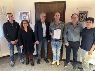 Er überreichte in Anwesenheit des technischen Leiters Klaus Frisch und der kaufmännischen Leiterin Petra Berberich-Vollmar, seines Nachfolgers Dirk Stumpf des Büroleiters Andreas Traumer und der Vertreterin des Personalrats ein Präsent sowie eine Dankurkunde, in der er den Dank und die Anerkennung der Verbandsgemeinde für die langjährig geleisteten treuen Dienste für die Verbandsgemeinde aussprach.