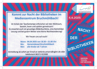 Nacht der Bibliotheken am 04.04.2025 im Medienzentrum Bruchmühlbach