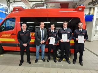 Beförderung zum Brandmeister: Immanuel Iwanow, Jonas Bold, Rouven Lanz