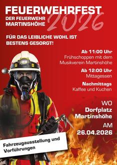 Am Sonntag, den 26. April 2026, laden wir euch herzlich zu unserem jährlichen Feuerwehrfest ein. Wir freuen uns darauf, gemeinsam mit euch einen unterhaltsamen Tag zu verbringen, bei dem für Groß und Klein viel geboten ist. Ab 11 Uhr starten wir mit dem Frühschoppen, begleitet von musikalischer Unterhaltung durch unseren örtlichen Musikverein. Für euer leibliches Wohl ist gesorgt: Es gibt herzhaftes Essen, erfrischende Getränke sowie Kaffee und Kuchen, die unsere Jugendfeuerwehr mit viel Engagement vorbereitet.