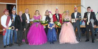 Foto: VGV Das Foto zeigt v.l.n.r.: SGV-Sitzungspräsident Dominik Barth, FCL-Sitzungspräsident Thomas Bleyer, Ortsbürgermeister Rudi Molter (Lambsborn), Bürgermeister Erik Emich, UVB-Prinzessin Tabea I., UVB-Sitzungspräsidentin Brenda Seng, KUM-Kinderprinzessin Romy I., KUM-Präsident Hubert Braun, KUM-Prinzenpaar Kristin I. und Sascha I. sowie Ortsbürgermeister Rüdiger Franz (Bruchmühlbach-Miesau)