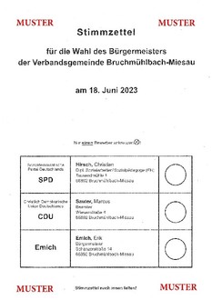 Am Abend des Wahlsonntages sind die Ergebnisse der Bürgermeisterwahl auf der Homepage der Verbandsgemeinde Bruchmühlbach-Miesau unter www.bruchmuehlbach-miesau.de abrufbar.