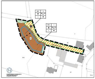 Angedacht ist hier eine Erweiterungsfläche für eine Halle mit Wohnnutzung, in der ein Fuhrpark (u.a. Landwirtschaftliche Maschinen, Privat-PKW) untergebracht werden kann sowie ein weiteres Wohnhaus.