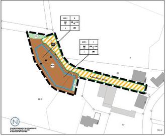 Angedacht ist hier eine Erweiterungsfläche für eine Halle mit Wohnnutzung, in der ein Fuhrpark (u.a. Landwirtschaftliche Maschinen, Privat-PKW) untergebracht werden kann sowie ein weiteres Wohnhaus.