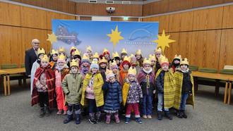 Dabei waren die Sternsinger der katholischen Pfarrei St. Maria Magdalena Bruchmühlbach in Begleitung mit Frau Lauer auch im Rathaus der Verbandsgemeinde zu Besuch und segneten das Verwaltungsgebäude mit dem Kreidezeichen „20*C+M+B+26“.