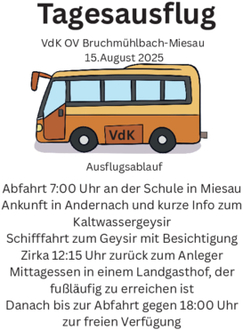 Der Fahrpreis kann mittwochs im VdK-Büro in Miesau zwischen 14:00 und 16:00 Uhr entrichtet werden.