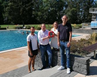 Auf lebensbedrohliche Situationen kann im Freibad in Miesau ab sofort besser reagiert werden. Das Freibad-Team hat einen Defibrillator zur Ergänzung der Notfallausstattung erhalten. Möglich gemacht hat dies eine Spende der Volksbank Glan-Münchweiler.