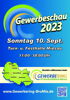 Der Gewerbering Bruchmühlbach-Miesau veranstaltet am 10. September 2023 eine Gewerbeschau in der Turn- und Festhalle Miesau. Von 11:00 - 18:00 Uhr bietet sich den Besuchern eine bunte Vielfalt aus Gewerbe, Handwerk und Handel.