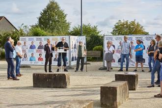 Landrat Ralf Leßmeister stellte die Entstehung des Projektes in einem kurzen Abriss dar und bedankte sich bei allen Beteiligten, die diese außergewöhnliche Hommage an die Demokratie organisiert hatten. Er lud alle Anwesenden ein, bei einem kleinen Umtrunk ins Gespräch zu kommen, was die Anwesenden gerne annahmen.