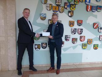 Eine Spende der Sparkasse Kaiserslautern über 2.400 Euro überreichte Landrat Ralf Leßmeister in seiner Funktion als Verwaltungsratsvorsitzender und im Auftrag der Sparkassen-Vorstände an Norbert Aust (Vorstand Finanzen) vom SC Vogelbach. Die Spende, die auch auf Anregung des Landtagsabgeordneten Marcus Klein erfolgte, wird für den Wiederaufbau des Rasenplatzes verwendet, der im November von einem unbekannten Autofahrer völlig verwüstet wurde. Im Mai soll der Wiederaufbau beginnen, die Gesamtkosten liegen bei rund 12.000 Euro.