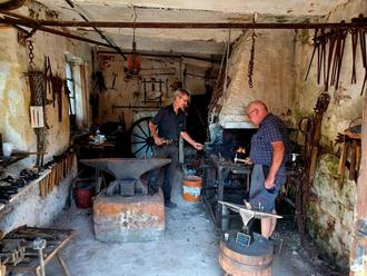 Nach langen Jahren des Dornröschenschlafes wurde am diesjährigen Tag des offenen Denkmals am 10.09.2023 die Alte Schmiede wieder geöffnet. Initiatoren waren die Museumsschmiede Alex Storck und Uwe Priebe, die auch am Freilichtmuseum in Bad Sobernheim ehrenamtlich das Handwerk zeigen. Den vielen begeisterten Zuschauern wurden mit dem sehr gut erhaltenen Handwerkzeug des verstorbenen Rudi Reischmann grundlegende Schmiedetechniken und die Herstellung von Werkstücken gezeigt.