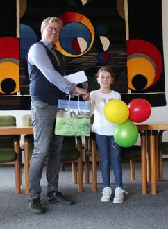 Samira hat uns im Rathaus besucht und erhielt als Siegerin des Luftballon-Wettbewerbs als Preis Süßigkeiten sowie eine Zehnerkarte für das Freibad. Wir wünschen dir viel Spaß mit deinem Preis!
