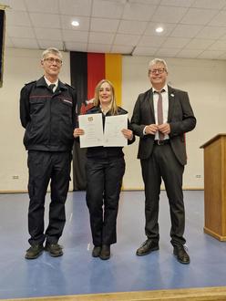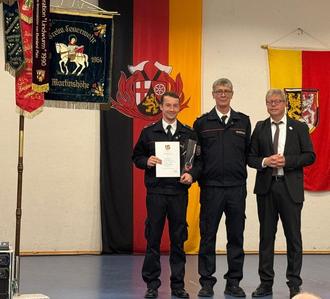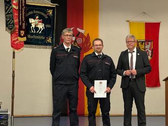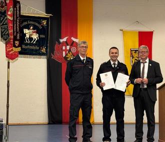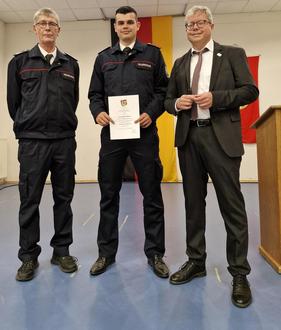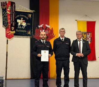 Ein besonderes Highlight des Abends, Bürgermeister Christian Hirsch wurde selbst zum Feuerwehrmannanwärter ernannt und verstärkt künftig die Reihen der Freiwilligen Feuerwehr.