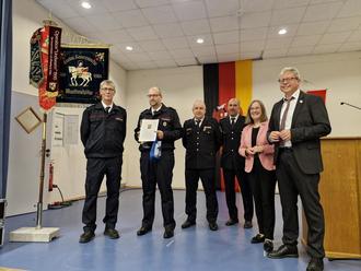 Eine besondere Würdigung erhielten Klaus Marhofer und Thomas Drebinski, die für 50 Jahre aktiven Dienst in der Feuerwehr geehrt wurden. Gleichzeitig wurde Thomas Drebinski im Rahmen der Versammlung verabschiedet, da er seinen aktiven Feuerwehrdienst beendet.