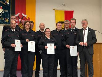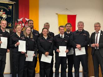 Hauptfeuerwehrmann/-frau: Luis Burgard, Felipe Fernandez, Jenny-Lee Kuntz, Robert Mock, Julian Landoll, Kerstin Theis, Dennis Rietz, Rene Schäfer, Keven Homann