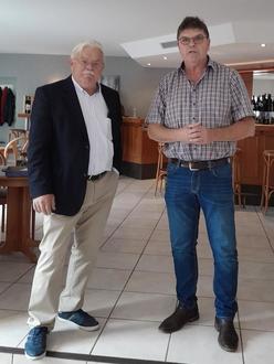 AWO-Vorsitzender Hirsch (links) nimmt die Grußworte von Ortsbürgermeister Franz entgegen.