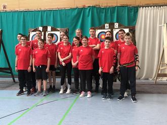 Durch die Miesauer Sporthalle ertönen zwei laute Huptöne - zwanzig Jugendliche nehmen ihre Bögen, stellen sich auf die Schießlinie, spannen ihren Bogen und lassen Pfeil für Pfeil auf das 18 m entfernte Ziel fliegen. Eine durchaus schwierige Angelegenheit.