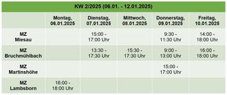 | Miesau | 23.12.2024 - 05.01.2025 | 20.12.2024 (Fr) | 07.01.2025 (Di) |