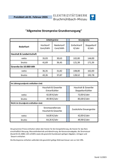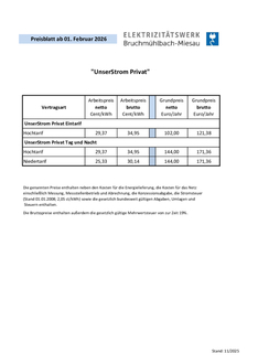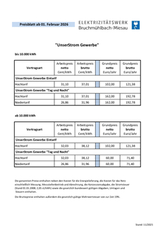 Zum 01.02.2026 wird der bisherige Arbeitspreis um 4,17 ct/kWh (brutto) gesenkt.