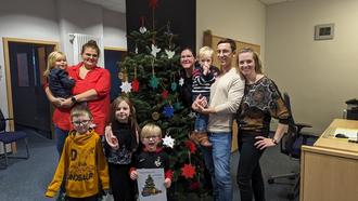 Die Kita Zellertal hat in diesem Jahr an dem Weihnachtsbaumschmücken der Volksbank Alzey-Worms eG teilgenommen.
