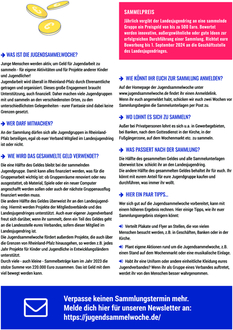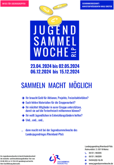 Vier Jahre nach der Pandemie bleibt es für Jugendgruppen nach wie vor schwierig für die eigene n Aktivitäten und für Projekte ausreichend Gelder zusammen zu bekommen. Die Jugendsammelwoche zwischen dem 23. April und dem 2. Mai 2024 bietet eine großartige Möglichkeit geplante Projekte umsetzen zu können. Denn, trotz der aktuellen Mehrkosten in den Bereichen der Energie und der Verbrauchsgüter, wird Jugendarbeit überall in Rheinland-Pfalz durch ehrenamtliche Tätigkeit getragen und organisiert.