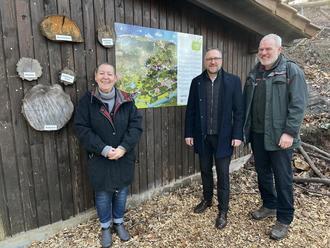 Bürgermeister Steffen Antweiler bedankte sich herzlich bei der Pfälzer Wald Verein Gruppe in Göllheim, vertreten durch Frau Regina Pohl, dass Schild an der Hütte aufhängen zu können. Ein ebenso herzlicher Dank geht an Förster Franz Kern für die tatkräftige Unterstützung beim Anbringen des Schildes sowie an den Donnersberg-Touristik-Verband e.V. die diese Aktion gefördert haben.