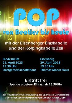 Wir laden Sie recht herzlich zu den Konzerten „Pop von Beatles bis heute“ ein und freuen uns auf ihren Besuch.