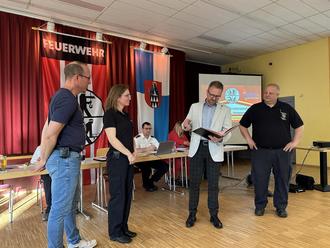 Verpflichtet wurden für die Feuerwehr: Braun Marcus, Comici Andrei, Euler Marlon, Herber-Braun Elke, Kuntz Svenja, Olczak Fabian, Schwarz Antonia, Schwarz Tina, Tunjic Mateo und Walter Benjamin.