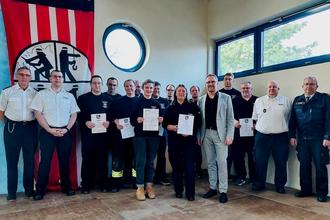 Im Beisein von Vertretern der Kreisverwaltung und des Kreisfeuerwehrverbandes (KFV) Donnersberg geht es weiter im Programm, für 25 und 35-jährige Pflichtreue werden das silberne und goldene Feuerwehrehrenzeichen des Landes Rheinland-Pfalz verliehen.