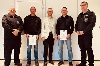 v.l.n.r. Wehrleiter Steffen Specht, Wehrführer Markus Oßwalt, Bürgermeister Steffen Antweiler, stellv. Wehrführer Jan Bauer, stellv. Wehrleiter Manuel Fischer.