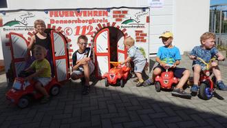 Der Brandschutzanhänger mit den Spielgeräten für die Kleinsten