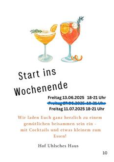 Unser nächster Start ins Wochenende ist am 11. Juli und dann am 8. August.