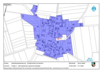 Der Geltungsbereich dieser Satzung erstreckt sich auf das gesamte Ortsgebiet der Ortsgemeinde Immesheim und ist im beigefügten Lageplan (Anlage 1) dargestellt.