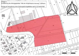 Auslegung des Entwurfes der Rechtsverordnung über die Festsetzung des Grabungsschutzgebietes „Villa Am Knöpfchesbrunnenweg“, Gemarkung Göllheim, Landkreis Donnersbergkreis. Beteiligung der betroffenen Öffentlichkeit nach § 9 DSchG und § 13, Abs. 2, Nr. 2 i.V. m. § 3, Abs. 2 i.V. m. § 1, Abs. 8 BauGB