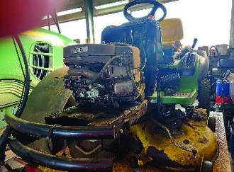 Teile der Brems- und der Lenkanlage defekt, Keilriemen verschlissen, starker Rost, Gebrauchsspuren, Achse vorne gebrochen, Reifen stark abgefahren, Getriebe macht Geräusche, Fahrersitz defekt, Fahrzeug ist zerlegt, da die Achse gebrochen ist.