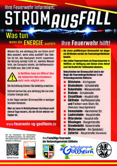 Weiter möchten wir Sie darüber informieren, wie und wo im Falle eines Stromausfalles in der Verbandsgemeinde Göllheim Ansprechstellen zur Verfügung stehen.