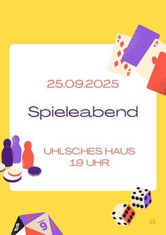 Wir laden zum gemütlichen Abend mit Gesellschafts- und Kartenspielen ein.