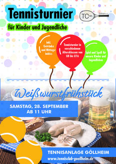 Nicht vergessen: Am kommenden Samstag, 28. September finden das Tennisturnier für Kinder und Jugendliche und das Weißwurstfrühstück beim Tennisclub Göllheim statt.