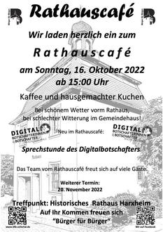 Am Sonntag, den 16. Oktober 2022 lädt das Team vom Rathauscafé ab 15.00 Uhr wieder zu Kaffee und hausgemachtem Kuchen ein. Bei schönem Wetter am historischen Rathaus und bei schlechter Witterung im Gemeindehaus.