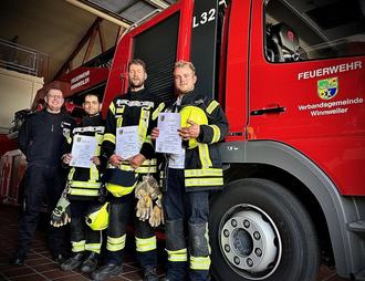 Mit der erworbenen Ausbildung, die am Standort der Stützpunktfeuerwehr Winnweiler angeboten wurde, übernehmen die drei jetzt Verantwortung für nachgeordnete Kameraden. Neben rechtlichen und theoretischen Grundlagen der Brandbekämpfung, technischen Hilfe und dem Umgang mit Gefahrstoffen, standen auch viele praktische Übungen auf dem Lehrplan.