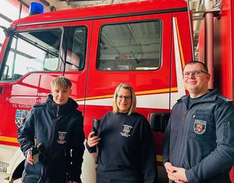 Foto Sprechfunk: v.l.n.r. Florian Hartelt, Michaela Fischer, stv. Wehrleiter Manuel Fischer