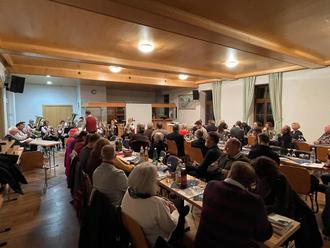 Mehr als 200 Seiten, gefüllt mit interessanten Geschichten über das Land rund um den Donnersberg: Das Donnersberg-Jahrbuch 2024. Am 30. November stellte Landrat Rainer Guth die diesjährige Ausgabe im Dorfgemeinschaftshaus in Waldgrehweiler vor. „Gesundheit hat viele Facetten" lautet der Themenschwerpunkt der 47. Auflage des Heimatkalenders. Das Donnersberg-Jahrbuch ist für 9,50 Euro beim Donnersberg-Touristik-Verband, im örtlichen Buchhandel und anderen Verkaufsstellen erhältlich. „Das Donnersberg-Jahrbuch ist ganz tolles Buch, dass schon seit Jahren, auch lange bevor ich Landrat wurde, eine meiner jährlichen Lektüren war. Auch in diesem Jahr ist der Heimatkalender mit vielen interessanten und spannenden Beiträgen gefüllt und eignet sich ideale als Vorweihnachtslektüre.“ Während der Vorstellung des Heimatbuches präsentierte Landrat Rainer Guth sein eigenes Exemplar, das bereits mit bunten Zetteln bestückt war. Jede Stelle markierte eine Passage im Donnersberg-Jahrbuch, zu der Rainer Guth persönliche Anekdoten zum Besten gab. Darüber hinaus hob er-, wie auch der Ortsbürger- meister Helmut Brand-, das Engagement des Redaktionsteams Andreas Fischer, Torsten Schlemmer, Martina Wasem, Peter Wasem, Andreas Diener sowie Redaktionsleiterin Barbi Driedger-Marschall und allen weiteren Autorinnen und Autoren hervor. Der diesjährige Themenschwerpunkt passt zu den zahlreichen Entwicklungen des letzten Jahres im Bereich Gesundheit. Die Eröffnung des Gesundheitszentrums in Kirchheimbolanden, der Studienbeginn der ersten Stipendiaten der Initiative „Ärzte für die Westpfalz“, das Medizinercamp sowie die zahlreichen Angebote im Bereich Gesundheit, die im Donnersbergkreis zur Verfügung stehen, zeigen, wie stark das Thema Gesundheit die Region im vergangenen Jahr geprägt hat. Auch wenn der diesjährige Themenschwerpunkt „Gesundheit hat viele Facetten" lautet, bietet das Donnersberg-Jahrbuch eine große Bandbreite an Themen. 60 Autorinnen und Autoren haben verschiedenste Beiträge verfasst, von Regionalgeschichten über kulturellen Themen hinzu Jugend, Schule und Sozialem sowie Menschen in ihrer Zeit ist für jeden Geschmack etwas dabei. Den Autorinnen und Autoren, Fotografinnen und Fotografen, dem gesamten Redaktionsteam, Uwe Jochim, der für den Satz und die Gestaltung zuständig war, sowie den Musikanten des Abends dankte Barbi Driedger-Marschall, die durch den Abend führte, wäh- rend ihrer Ansprache zu Beginn der Veranstaltung. Die Redaktionsleiterin ist seit Jahren für das Donnersberg-Jahrbuch verantwortlich. Kreisverwaltung Donnersbergkreis Ein besonderes Highlight der Veranstaltung war die musikalische Begleitung durch das Blechbläserensemble der Gesangvereinskapelle Rockenhausen, unter der Leitung von Heiko Opp, dass das Programm zwischen den verschiedenen Wortbeiträgen auflockerte. Der Abend bot außerdem auch einen interessanten Beitrag von Sebastian Voigt, der zum Thema „Versteinerte Saurierspuren und Urzeit-Phänomene im Moscheltal“ referierte und somit seinen Beitrag aus dem Donnersberg-Jahrbuch mündlich präsentierte.