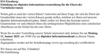 Zugangsdaten werden auf der Schulhomepage (www.igs-eisenberg.de) veröffentlicht.