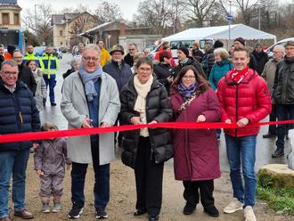 Das rote Band wurde von der rheinland-pfälzischen Wirtschaftsstaatssekretärin Petra Dick-Walther und Bürgermeister Bernd Frey durchschnitten. Danach wurde der neu angelegte Abschnitt hinter dem Eisenberger Bahnhof bei einem kleinen Spaziergang erkundet.