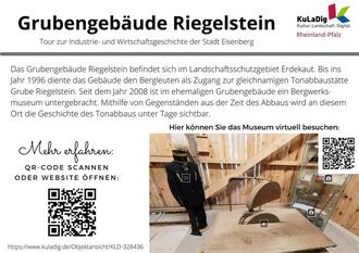 Auf den Infotafeln eröffnen QR-Codes durch einfaches Abscannen mit dem Smartphone die Möglichkeit, beim Spaziergang zum Beispiel durch die Erdekaut, das Grubenmuseum Riegelstein unabhängig von Öffnungszeiten virtuell zu besuchen. In der digitalen Museumstour integriert sind historische Videos und Berichte von ehemaligen Grubenmitarbeitern, welche die harte Arbeit und die Grubengeschichte Eisenbergs eindrucksvoll visualisieren.