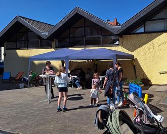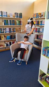 Um 14 Uhr ging es los und es herrschte reges Treiben in und um die Bücherei bei schönstem Wetter. Der Innenhof ludt mit einem Vorlesekino bei Popcorn dazu ein, spannende Geschichten zu genießen. In Liegestühlen oder unter dem Pavillon ließ sich Sonne tanken - mit einem Buch oder einer leckeren Waffel. Besonders beliebt bei den jüngeren Besuchern war das Angebot, die VR-Brille (Virtual Reality) auszuprobieren und damit Orte am anderen Ende der Welt zu entdecken oder Spiele zu testen. Am Basteltisch begeisterten „Wurfsocken“, mit denen die Kinder sich im Hof anschließend austoben konnten. Ein großer Bücherflohmarkt, Glitzer-Tattoos sowie Mal-Angebote rundeten das vielseitige Programm ab. Herzlichen Dank an dieser Stelle an die drei ehrenamtlichen Helfer, die zum Vorlesen und am Basteltisch tatkräftig unterstützt haben.