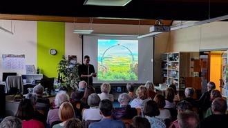 Nach einem kurzen Umbau füllte sich die Bücherei dann bereits ab 19 Uhr wieder zur Lesung mit Holger Wienpahl. Der SWR-Moderator las aus seinem Buch „Das Wandern ist des Mörders Lust“. In dem „Krimi mit einem Augenzwinkern“, wie er es nannte, der bei uns in der Region spielt, ging es um den perfekten Banküberfall, der ordentlich nach hinten losging. Im Anschluss an die Krimi-Lesung gab es viele Lieblingsorte und persönliche Geheimtipps des passionierten Wanderers sowie Auszüge aus seinem Buch „Glücksorte in Kaiserlautern - Fahr hin und werd glücklich“. Zum Abschluss rundete seine sehr persönliche Geschichte von „der Prinzessin, die nicht einschlafen konnte“, die er selbst mit seinen beiden Töchtern geschrieben hatte, den bunten Abend ab. Humorvoll mit vielen Anekdoten sprach Holger Wienpahl dann noch ganz offen über seinen Alltag als SWR-Moderator, über die Sendungen, seine Gäste und seine peinlichsten Momente.