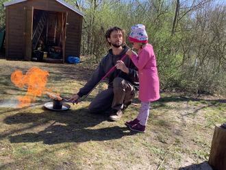 Sie haben zum ersten Mal ein Streichholz entzündet um die Kerzen wieder zum brennen zu bringen. Auch war Thema was man nicht verbrennen sollte, z. B. Plastik, Gummihandschuhe, Kunststoffe. Mit Wachs malen, ein Lagerfeuer machen mit Marshmallow essen und Feuerspucken durch ein Rohr waren die Highlights der Woche.