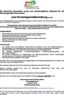 Die Gemeinde Kerzenheim sucht zum nächstmöglichen Zeitpunkt für die Kindertagesstätte Kerzenheim